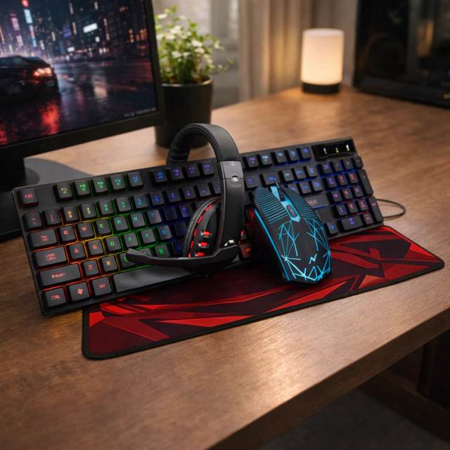 El NKB-407 es un Gaming Combo de Alto Diseño que te garantiza la mejor performance para tus juegos en PC. Contiene Teclado y Mouse Retroiluminados, Mouse Pad que brinda un óptimo deslizamiento y Auriculares con Micrófono confortablemente acolchados. Con el Gaming Combo NKB-407 tendrás todo lo que necesitas para dominar el juego y disfrutar al máximo.